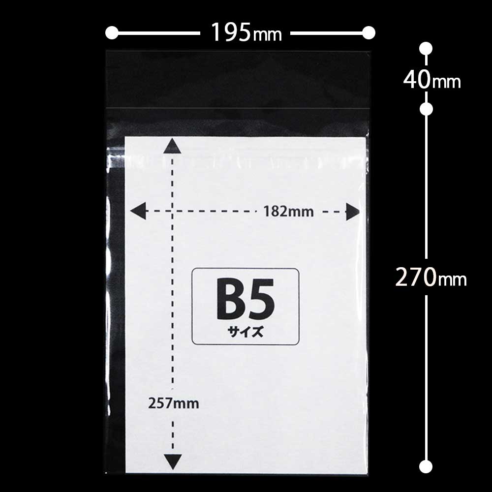 B5用OPP袋本体側開閉自在テープ付の#40厚口タイプです。