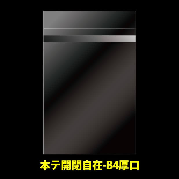 B4用OPP袋本体側開閉自在テープ付の#40厚口タイプです。