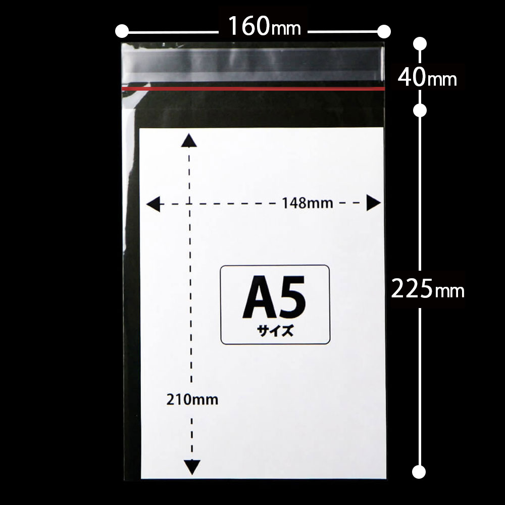 A5サイズ用のカットテープ付OPP袋です。