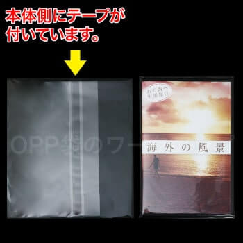 DVDトールスリム用アマレータイプのヨコ入れOPP袋、本体側テープ付きです。