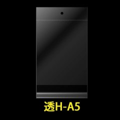 A5サイズ(148x210mm)をフックにひっかけることができる陳列用袋です。