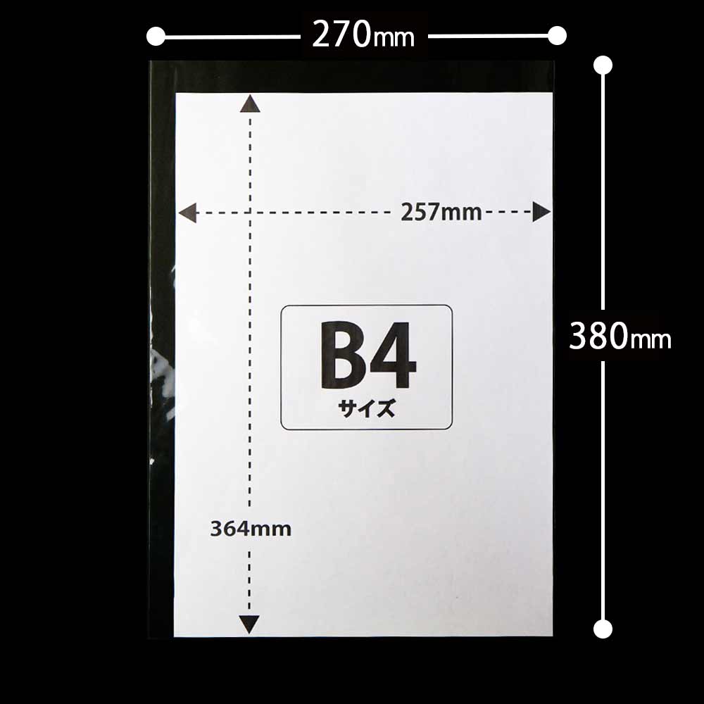 B4サイズのテープなしOPP袋とは、横270mmx縦380mmのやや大型なOPP袋です。