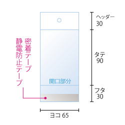 なお、弊社のヘッダー付きOPP袋製品は、すべて静電気防止シートを使用しておりますので、封入の際は、手にまとわりつきませんのでスムーズに封入でき、内職作業も効率的に行っていただけます。