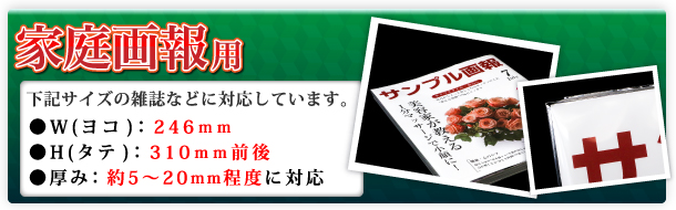 家庭画報にぴったりで、246x310mm程度の書籍に装着可能です。