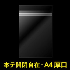 A4用OPP袋の本体側開閉自在テープ(静電防止タイプ)付です。