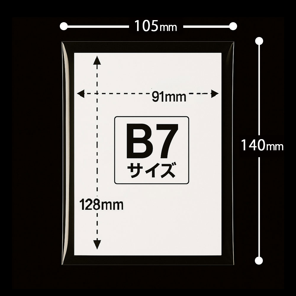 B7(91x128mm)をすっぽり気持ちよく包装可能です。