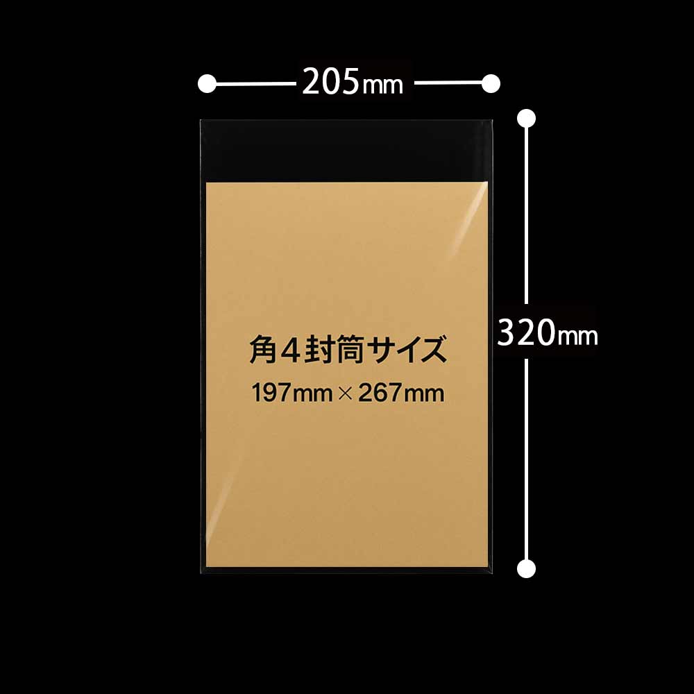 角4封筒サイズ(197x267mm)を気持ちよく包装出来ます。