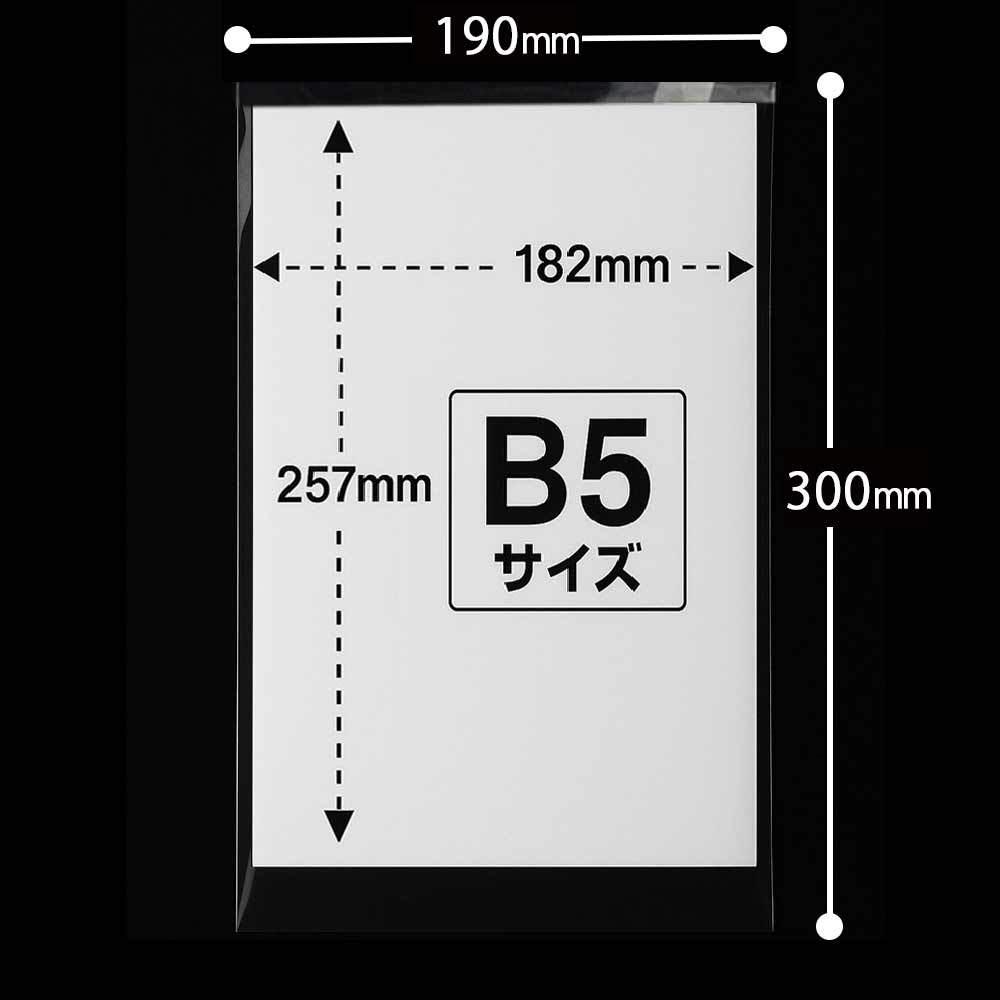 B5サイズ(182x257mm)を入れられる便利なOPP袋です。