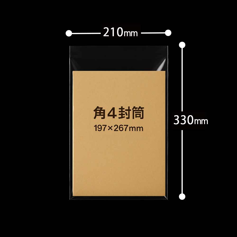 OPP袋のサイズは210x330mmで、A4(210x297mm)より33mm縦長な透明袋です。