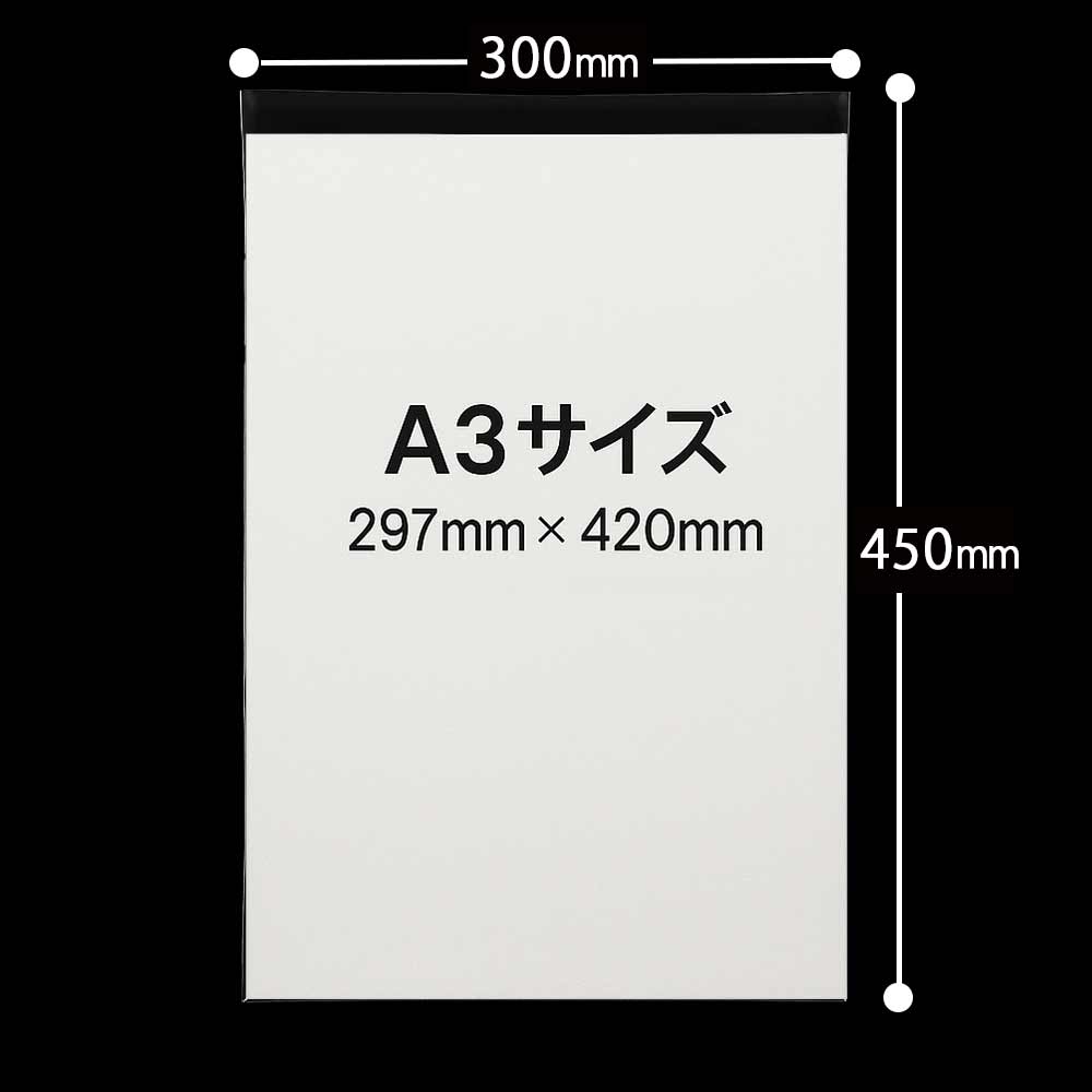 A3サイズ(297x420mm)がぴったり入る気持ちのいい大きさです。